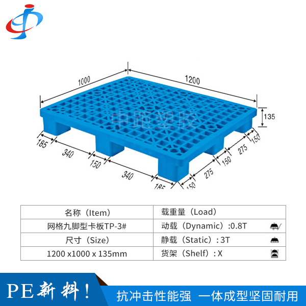 3、平板型:表面平整及表面大部分都为平面状,有些平板型卡板表面有少许网孔。